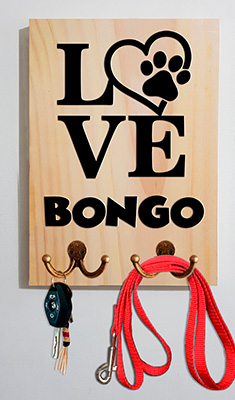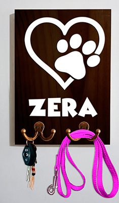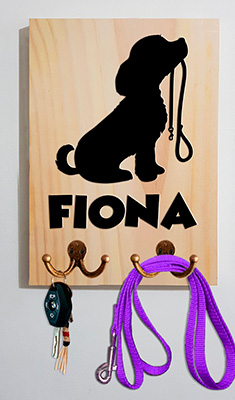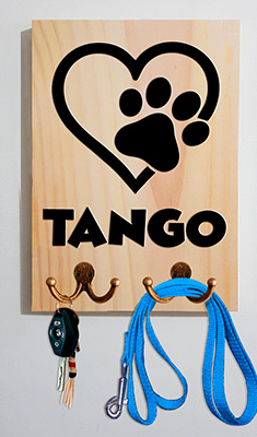 El perchero está fabricado en madera, cuenta con 3 diseños diferentes y el nombre de tu mascota, los cuales están cortados con la técnica de calado, este perchero personalizado para correas es una garantía de que le dará un toque de originalidad a tu hogar.